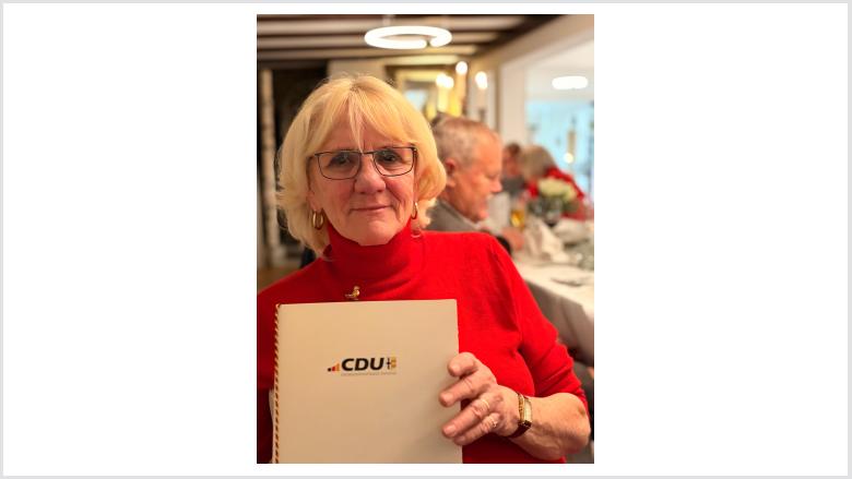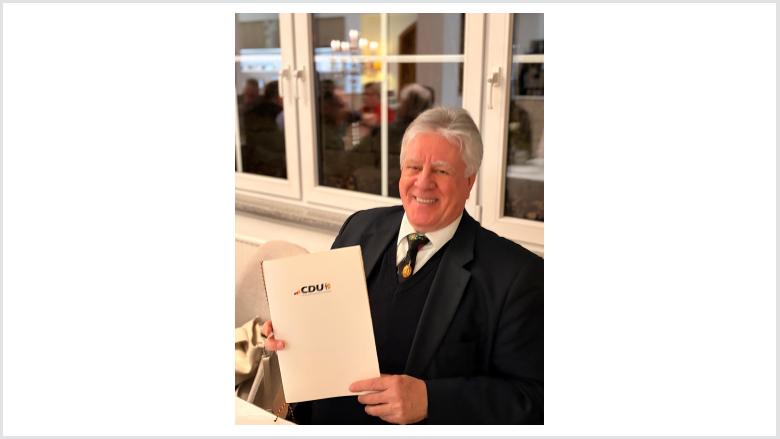 Als Dank erhielten die ausgeschiedenen Ratsmitglieder eine Urkunde und eine Anstecknadel, die sowohl aktive als auch ehemalige Ratsmitglieder der CDU Fraktion als engagierte und politische Mitbürgerinnen und Mitbürger erkennbar machen soll, die Verantwortung übernommen und die sich für die Gemeinschaft einsetzen und eingesetzt haben.