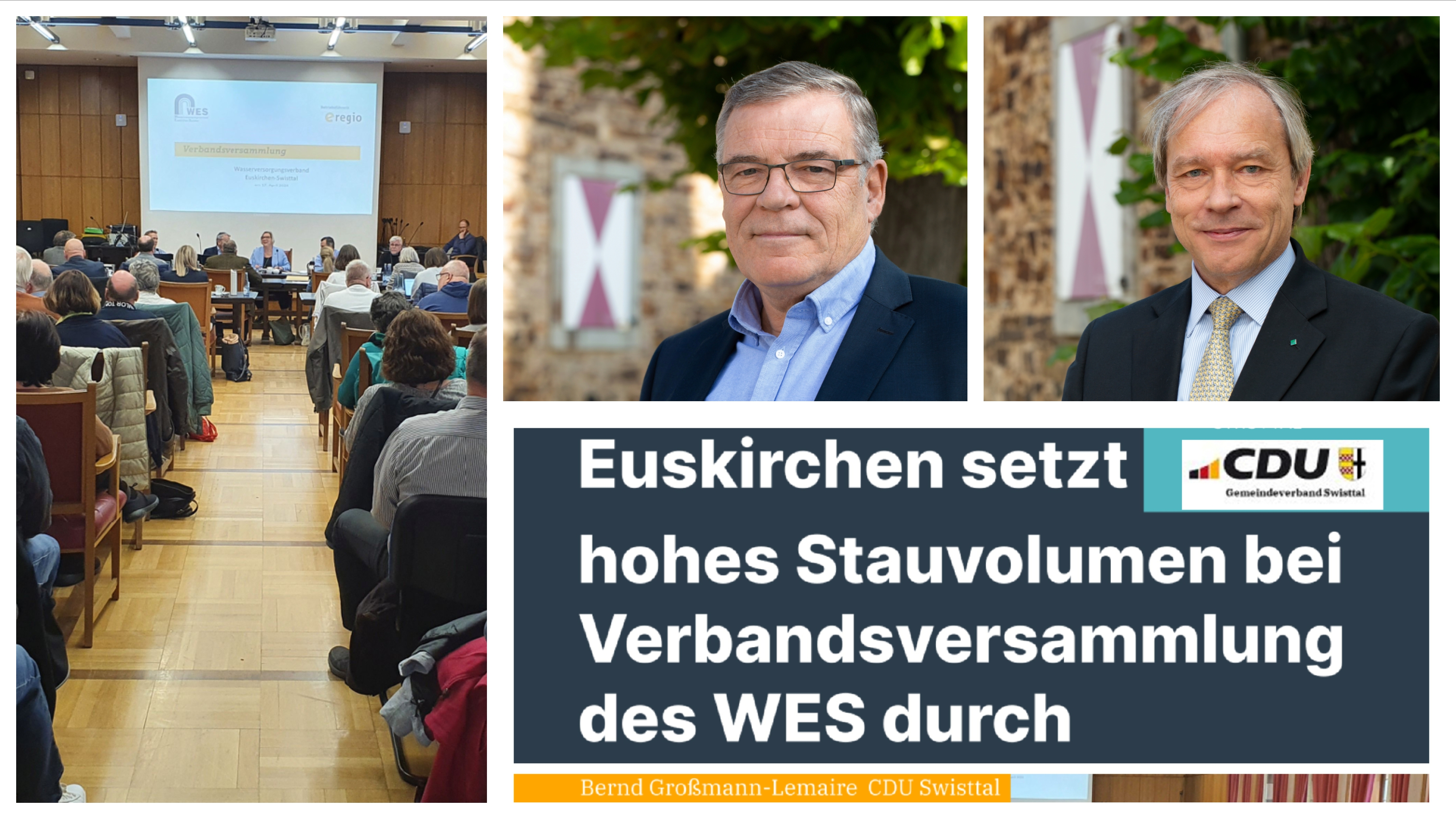 Die Euskirchener Mitglieder des Wasserversorgungsverbandes Euskirchen-Swisttal (WES) haben sich in der Sondersitzung der Verbandsversammlung gegen die Swisttaler Vertreter, für ein Betriebsstauvolumen von 750.000 m3 ausgesprochen. Diese Festlegung widerspricht der Bewertung des für den Hochwasserschutz zuständigen Erfverbandes, der in seiner Stellungnahme einen freibleibenden Stauraum von 500.000 m3, was einer maximalen Einstaumenge von lediglich 560.000 m3 entspräche, gefordert hatte. Nach Auffassung des Swisttaler Vertreters in der Verbandsversammlung, Hanns Christian Wagner (CDU), muss die eindeutige fachliche Expertise des Erftverbandes zum Hochwasserschutz Berücksichtigung finden. Danach dürfe ein Stauvolumen von 560.000 m3 nicht überschritten werden, solange der Kommunale Hochwasserschutz der unterhalb der Talsperre liegenden Gemeinden noch nicht abgeschlossen ist. Zum Betrieb der Talsperre ist, bei einer weiteren Betrachtung, ungeachtet der Expertise zum Hochwasserschutz, lediglich ein Mindesteinstauvolumen von 174.00 m3 erforderlich, um ein biologisches Umkippen der Talsperre zu verhindern und weitere 180.000 m3 zur Brauchwasserentnahme. Somit ist ein Einstauvolumen von 354.000 m3 grundsätzlich ausreichend, so Wagner. Damit ist bereits der von den Euskirchener Mitgliedern des WES geforderte Nutzwasserbedarf und die Existenzsicherung der Landwirtschaft in der Region gewährleistet. Hinzu kommt, dass die Brauchwasserversorgung in den Jahren nach der Flut vollständig über die Madbachtalsperre erfolgte. Die Frage, warum die Bedarfsdeckung zukünftig wieder vollständig über die Steinbachtalsperre erfolgen müsse, blieb unbeantwortet. Aber auch dann wäre die Empfehlung des Erftverbandes zum Hochwasserschutz noch ausreichend.
